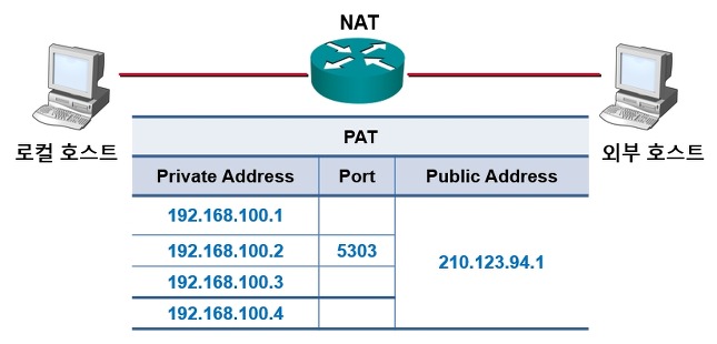 변환된 IP만 보고 로컬호스트를 구분할 수 없기 때문에 포트 번호를 이용해서 주소를 Mapping 시키는 방법이다.